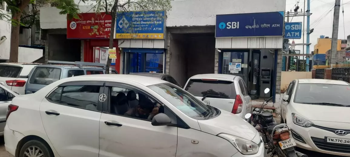 ஏ.டி.எம். முன்பு நிற்கும் வாகனங்கள்