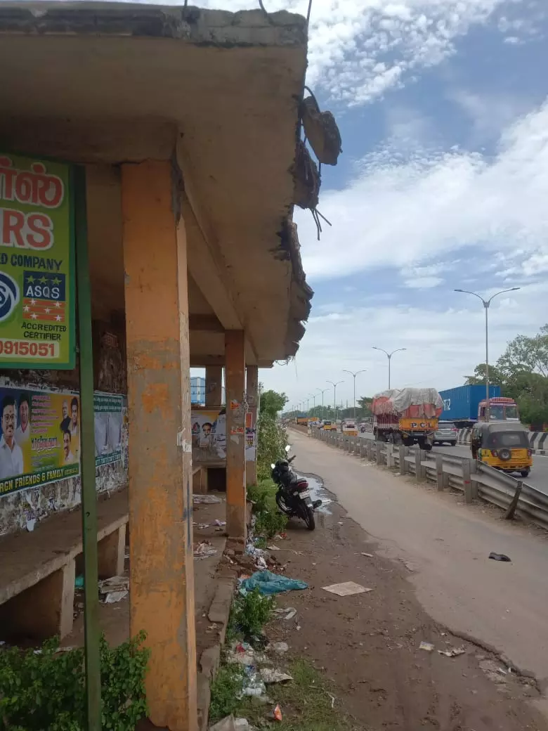 சென்னை புழல் அருகே உள்ள பாலிடெக்னிக் கல்லூரி பஸ் நிறுத்தம் அமைந்துள்ள நிழற்குடையின் மேல்பகுதி மற்றும் தூண்கள் கனரக வாகனம் உரசி சென்றதால் சேதமடைந்துள்ளது. இதனால் இந்த நிழற்குடைக்கு கீழே பயணிகள் நிற்பதற்கு தயங்கி சாலையில் இறங்கி நிற்கும் சம்பவங்கள் தினமும் நடக்கிறது. எனவே சேதமடைந்து காணப்படும் நிழற்குடையை சீரமைத்து தர சம்பந்தபட்ட நிர்வாகம் நடவடிக்கை எடுக்க வேண்டும் என கேட்டுக்கொள்கிறோம்.