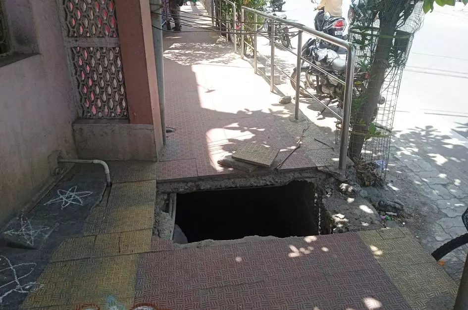நடைபாதையில் உடைந்துள்ள சிமெண்டு சிலாப்