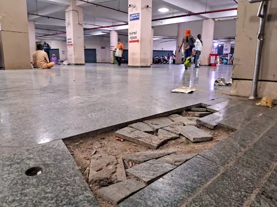 உடைந்து கிடக்கும் தள கற்கள்