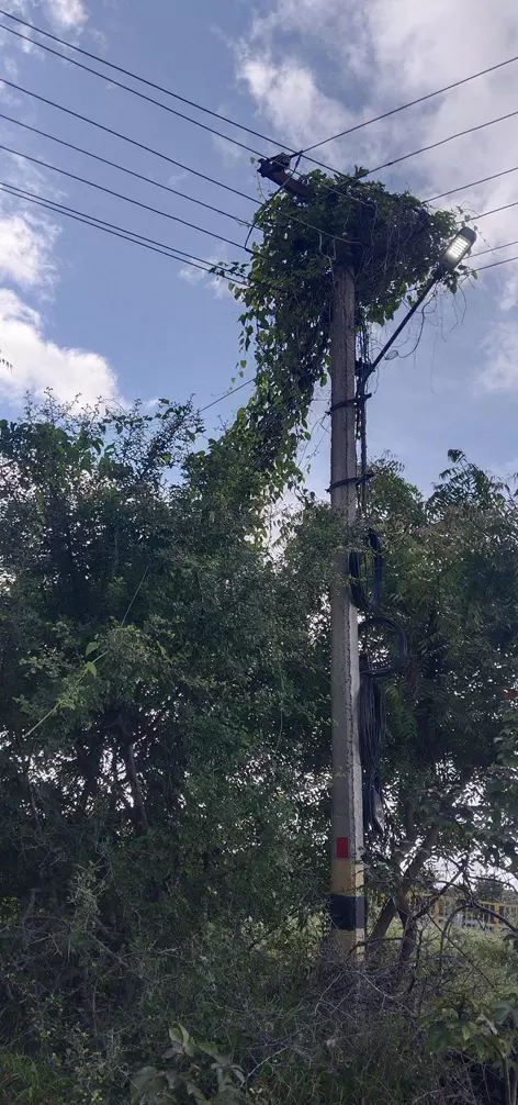 மின்கம்பங்களில் படர்ந்துள்ள செடிகள்