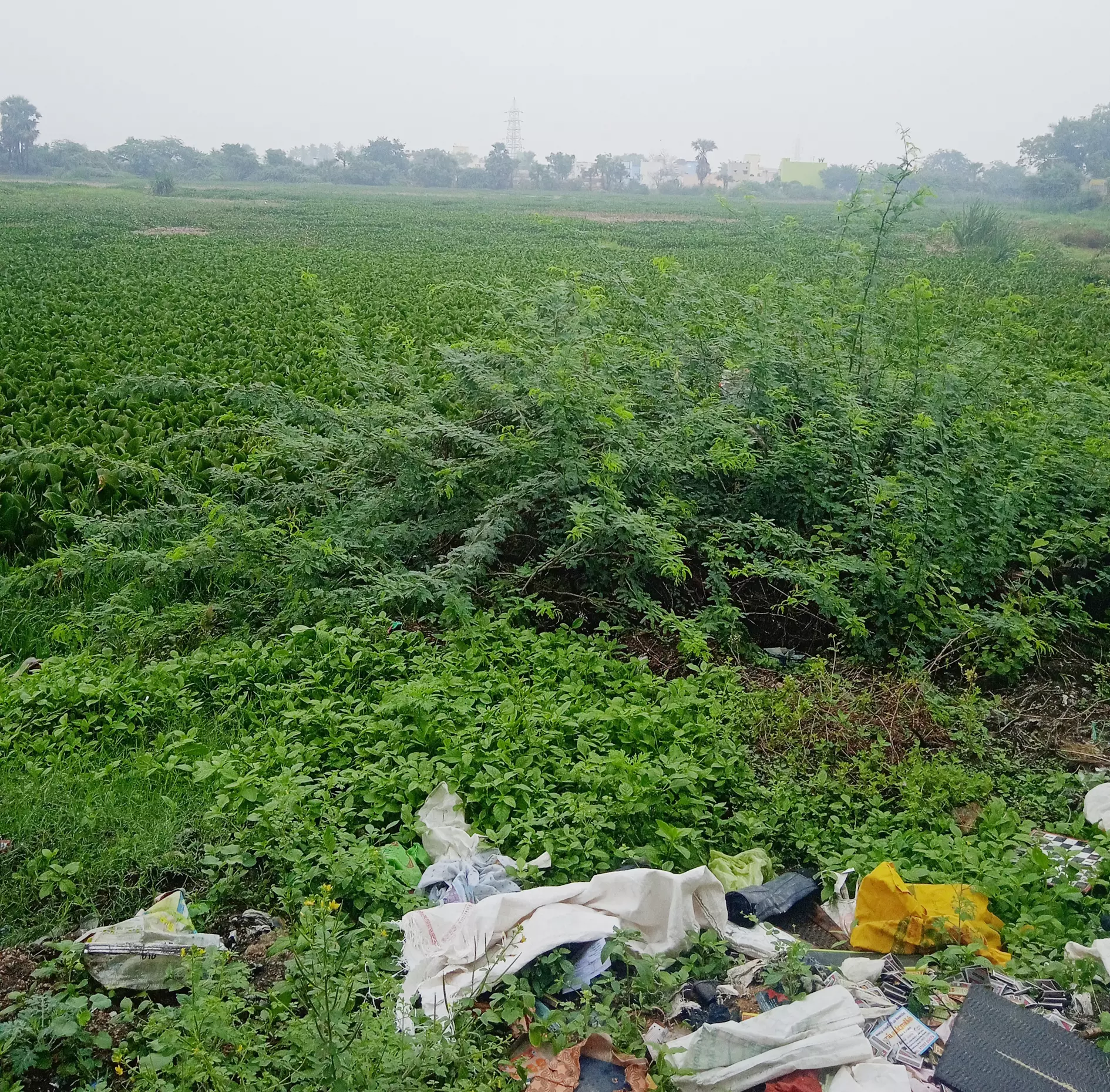 கண்மாயை ஆக்கிரமித்த அமலைச்செடிகள்