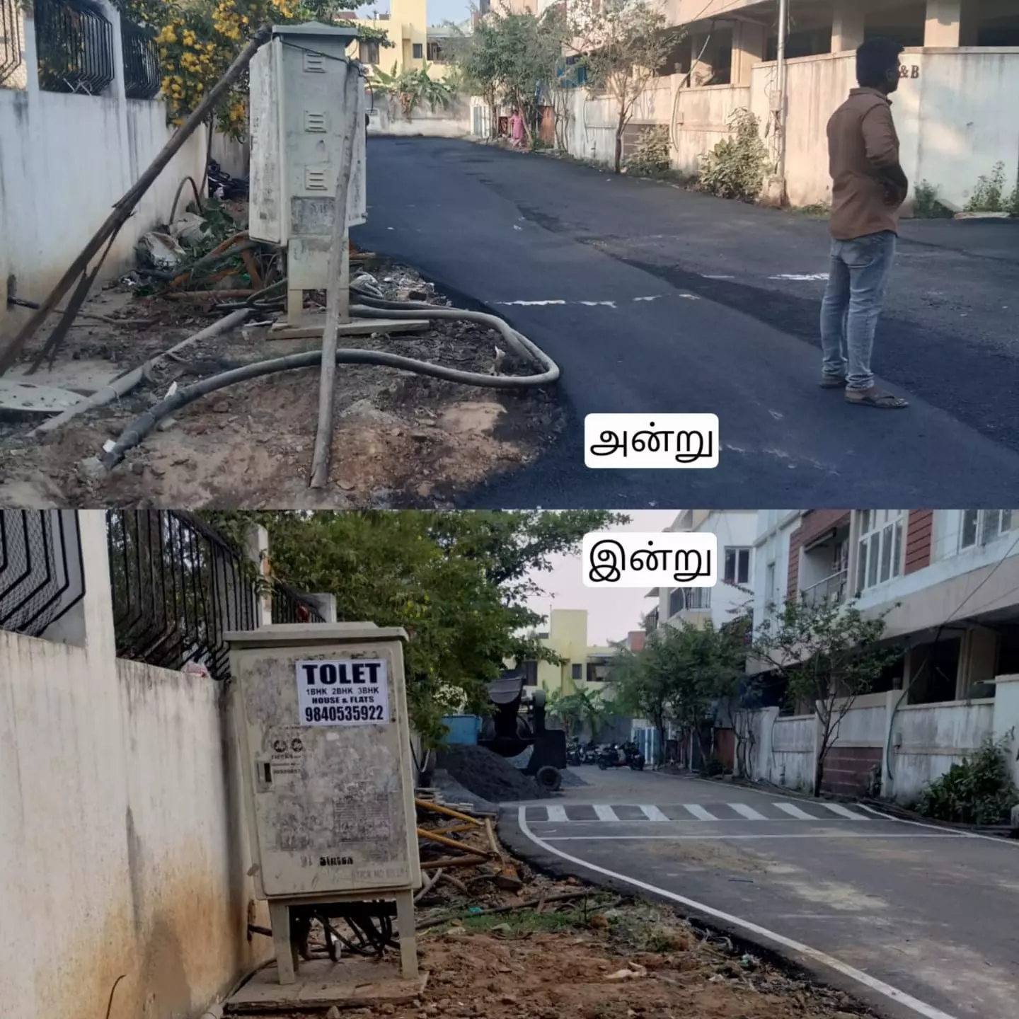 சென்னை துரைப்பாக்கம் ராஜ் நகர் 2-வது தெருவில் சில வாரத்திற்கு முன்பு தார் சாலை போடப்பட்டபோது அங்கிருந்த மின்பெட்டியின் மின்வயர்கள் சாலையில் போடப்பட்டன. இதுதொடர்பாக 'தினத்தந்தி' புகார் பெட்டியில் கடந்த வாரம் படத்துடன் செய்தி வெளியானது. சம்பந்தப்பட்ட துறைசார்ந்த அதிகாரிகள் உடனடி நடவடிக்கையாக அந்த மின்பெட்டியை நகர்த்தி வைத்து மின்வயர்கள் சாலையில் கிடக்காதவாறு வைத்தனர். உடனடி நடவடிக்கை எடுத்த அதிகாரிகளுக்கும், அதற்கு தூண்டுதலாக நின்ற 'தினத்தந்தி' பத்திரிகைக்கும் அப்பகுதி பொதுமக்கள் பாராட்டை தெரிவித்துள்ளனர்.