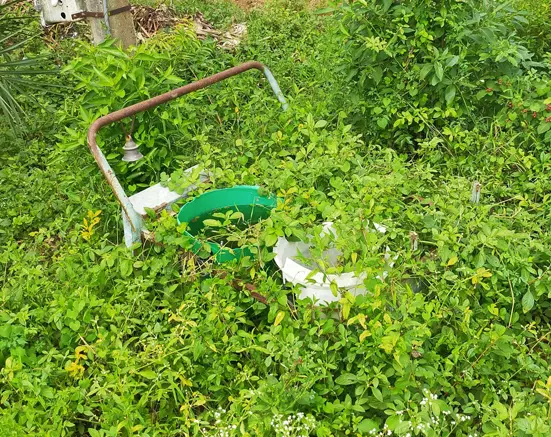 குப்பை வண்டிகளை சூழ்ந்த செடி, கொடிகள்