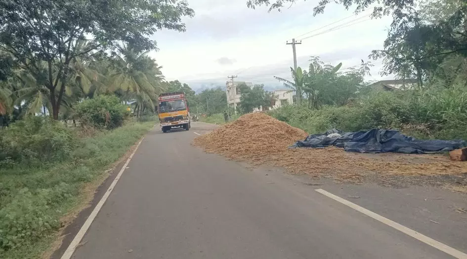 உப்புக்கோட்டையில் இருந்து தேவாரம் செல்லும் சாலையில் வாகன போக்குவரத்து அதிகம் உள்ளது. அதை பொருட்படுத்தாமல் சிலர் சாலையை களமாக மாற்றி சோளம் உள்ளிட்ட பயிர்களை அறுவடை செய்து சாலையில் உலர்த்துகின்றனர். இதனால் வாகனங்கள் விலகி செல்ல முடியாத நிலை ஏற்படுவதோடு, விபத்து ஏற்படும் அபாயமும் உள்ளது. அதை தடுக்க வேண்டும்.