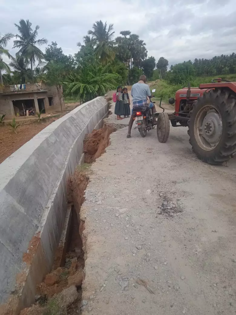 கிருஷ்ணகிரி மாவட்டம் பர்கூர் ஒன்றியம் காரகுப்பம் ஊராட்சி அருகே சின்னஏரி குட்டை பகுதியில் எர்கெட் செல்லும் சாலையில் இருபுறங்களிலும் தடுப்புச் சுவர் அமைக்கும் பணி நடக்கிறது. தடுப்புச்சுவர் அருகில் 10 அடி ஆழத்தில் பள்ளம் ஏற்பட்டுள்ளது. பொதுமக்கள், வாகன ஓட்டிகள், பள்ளி மற்றும் கல்லூரிக்கு செல்லும் மாணவ-மாணவிகளும் அந்த சாலையைத்தான் பயன்படுத்த வேண்டும். அந்த பகுதியில் தெரு விளக்கு இல்லாததால் இரவு நேரத்தில் சாலையை கடந்து செல்பவர்களுக்கு விபத்து ஏற்படலாம். பொதுமக்கள் பாதுகாப்பு கருதி ஆபத்தான நிலையில் உள்ள சாலையை உடனடியாக சீரமைக்க வேண்டும்.