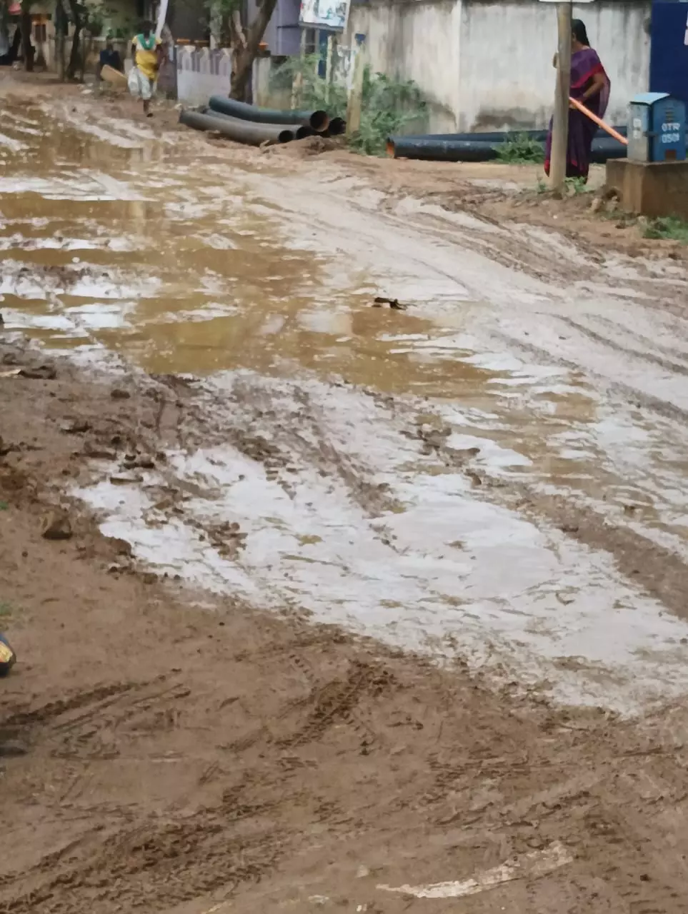 சேறும், சகதியுமான சாலை