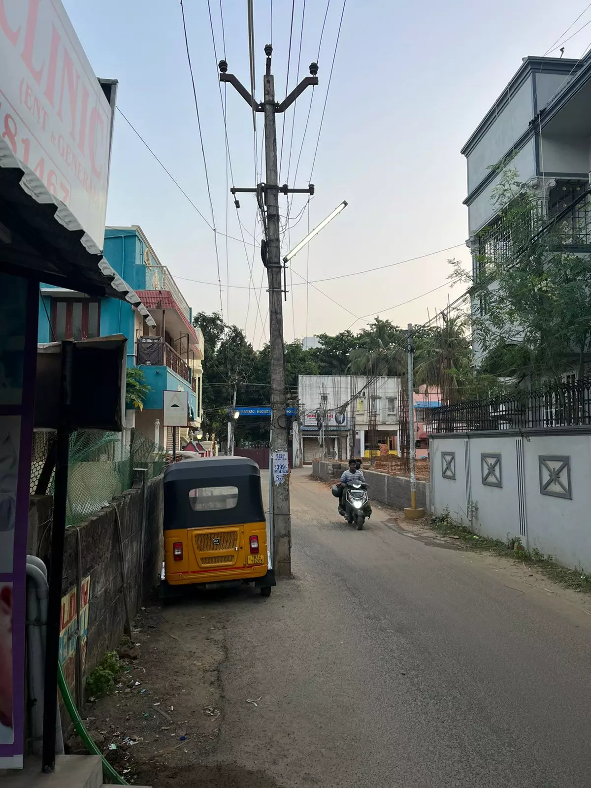 சாலையின் நடுவில் மின்கம்பம்