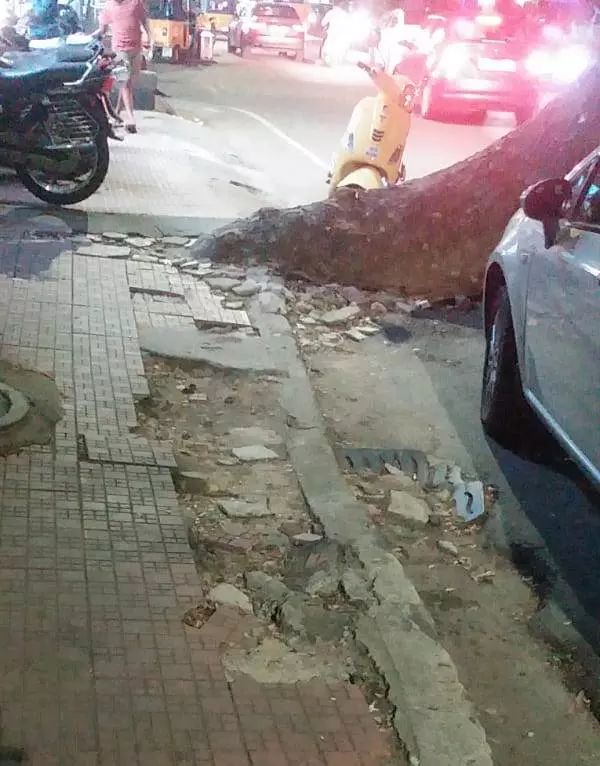 சென்னை கீழ்பாக்கம் டெய்லர்ஸ் சாலையில் உள்ள நடைபாதை சேதமடைந்தும் உடைந்தும் காணப்படுகிறது. இந்த நடைபாதையில் சில இடங்களில் பள்ளமாக காட்சி தருவதால், வயதானவர்கள் சில சமயங்களில் தடுக்கி கீழே விழுந்து விடுகிறார்கள். அருகிலேயே சாலை இருப்பதால் இரவு நேரங்களில் இந்த நடைபாதை பயணம் ஆபத்து நிறைந்ததாக இருக்கிறது. எனவே விரைவில் சேதமடைந்திருக்கும் நடைபாதையை சரி செய்ய வேண்டுகிறோம்.