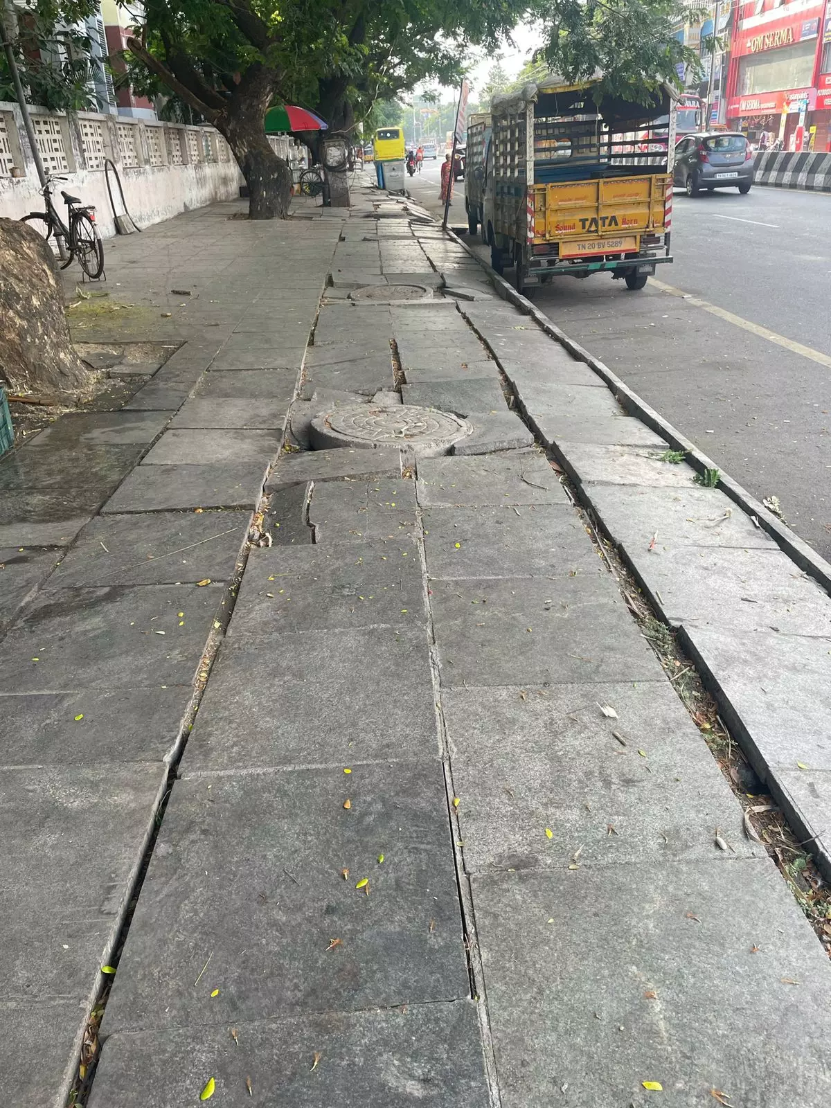 சென்னை திருவான்மியூர் பகுதியிலுள்ள் பிரபல பேக்கரியிலிருந்து திருவான்மியூர் பஸ் டிப்போ வரை இருக்கும் நடைபாதை சேதமடைந்தும் நடப்பதற்கு சிரமமாகவும் இருக்கிறது. இரவு நேரத்தில் இந்த நடைபாதையில் நடப்பவர்கள் தடுக்கி கீழே விழும் சம்பவங்கள் அன்றாடம் நடக்கிறது. எனவே சேதமடைந்த நடைபாதையை சீரமைக்க வேண்டும் என கேட்டுக்கொள்கிறோம்.
