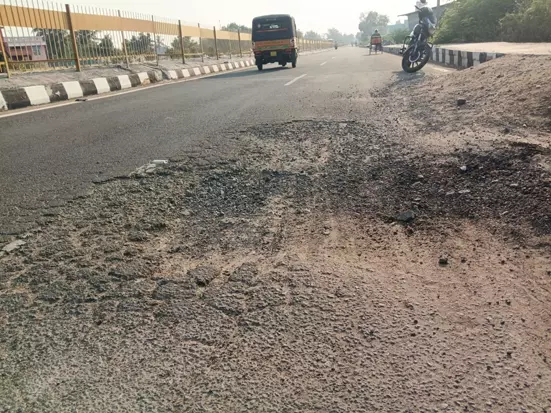 அணுகுச்சாலையில் ஆபத்தான பள்ளம்