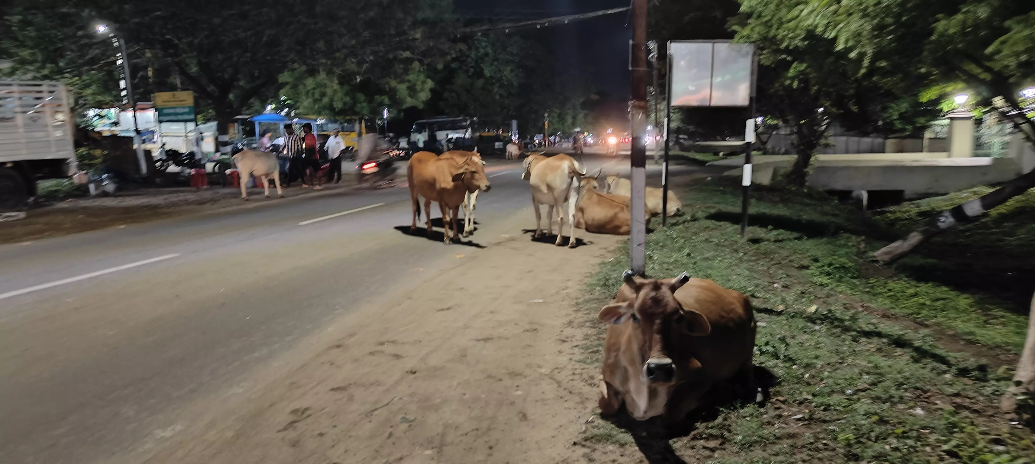 புதுக்கோட்டை நகரெங்கும் குறிப்பாக முதல்-அமைச்சர், அமைச்சர்கள் மற்றும் முக்கிய அரசியல் பிரமுகர்கள் வந்து தங்கிச் செல்லும் ரோசா இல்லம் மற்றும் மாவட்ட காவல்துறை கண்காணிப்பாளர் அலுவலகம் அமைந்திருக்கும் புதுக்கோட்டை -மதுரை நெடுஞ்சாலையில் மாடுகள் கட்டுப்பாடின்றி சாலைகளில் சுற்றித்திரிகின்றன. இவை திடீரென சாலையின் குறுக்கே ஓடுவதினால் விபத்து ஏற்படும் அபாயம் உள்ளது. மேலும் இந்த சாலை வழியாக செல்லும் இரு சக்கர வாகன ஓட்டிகள் எங்கு தங்களை மாடுகள் முட்டிவிடுமோ என்ற அச்சத்துடனேயே சென்று வருகின்றனர். மேலும் இரவு நேரத்தில் மாடுகள் சாலையில் படுத்துக் கொள்வதால் போக்குவரத்திற்கு இடையூறு ஏற்படுகிறது. எனவே இது குறித்து சம்பந்தப்பட்ட அதிகாரிகள் விரைந்து நடவடிக்கை எடுக்க வேண்டும் என கேட்டுக்கொள்கிறோம்.