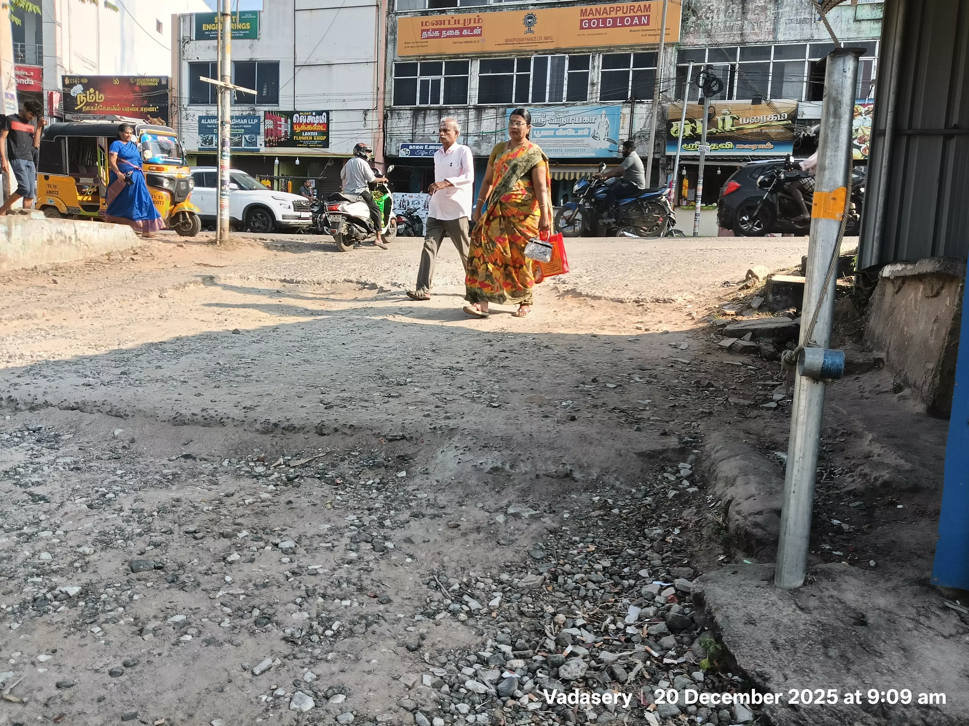 வடசேரியில் காய்கறி சந்தை உள்ளது. இந்த சந்தைக்கு மாநக பகுதிகளில் இருந்து தினமும் ஏராளமான மக்கள் வந்து காய்கறி பழங்கள் உள்ளிட்டவற்றை வாங்கிச் செல்கின்றனர். இந்த சந்தைக்கு வடசேரியின் பிரதான சாலையில் இருந்து செல்லும் சாலையில் ஜல்லிகள் பெயர்ந்து குண்டும் குழியுமாக காணப்படுகிறது. இதனால், வாகன ஓட்டிகள், பாதசாரிகள் பெரும் அவதிக்குள்ளாவதுன், அடிக்கடி விபத்திலும் சிக்கி வருகிறார்கள். எனவே, சேதமடைந்து சாலையை சீரமைக்க அதிகாரிகள் நடவடிக்கை எடுக்க வேண்டும்.