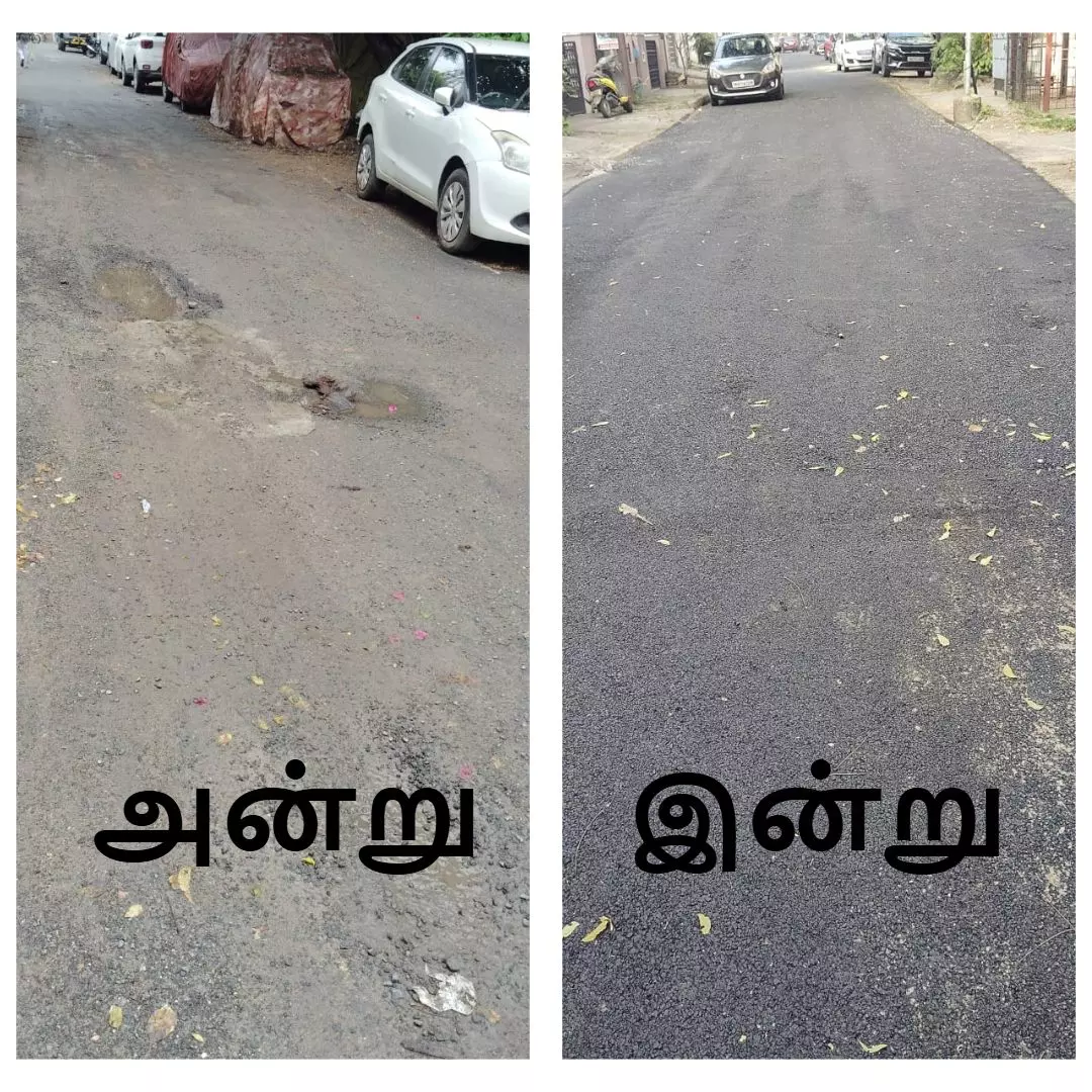 சென்னை அடையாறு பகுதியில் கஸ்தூரிபாய் நகர் 5வது மெயின் ரோடு மற்றும் ஆறாவது மெயின் ரோடு இந்த இரண்டு சாலையும் குண்டும் குழியுமாக இருந்தது. இதுதொடர்பாக 'தினத்தந்தி' புகார் பெட்டியில் கடந்த வாரம் படத்துடன் செய்தி வெளியானது. சம்பந்தப்பட்ட துறைசார்ந்த அதிகாரிகள் உடனடி நடவடிக்கையாக மின்சார வயர்களை பாதுகாப்பான வகையில் பூமிக்கு அடியில் புதைத்துவிட்டு சென்றனர். உடனடி நடவடிக்கை எடுத்த அதிகாரிகளுக்கும், அதற்கு தூண்டுதலாக நின்ற ‘தினத்தந்தி‘ பத்திரிகைக்கும் அப்பகுதி பொதுமக்கள் பாராட்டை தெரிவித்துள்ளனர்.