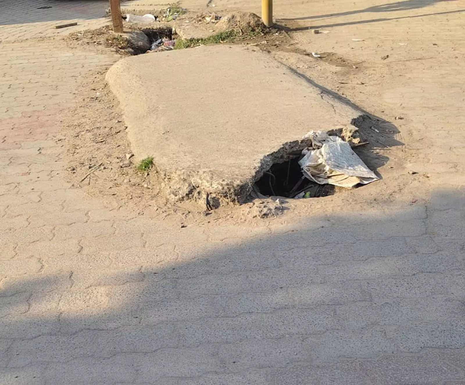 சாலை நடுவில் ராட்சத பள்ளம்