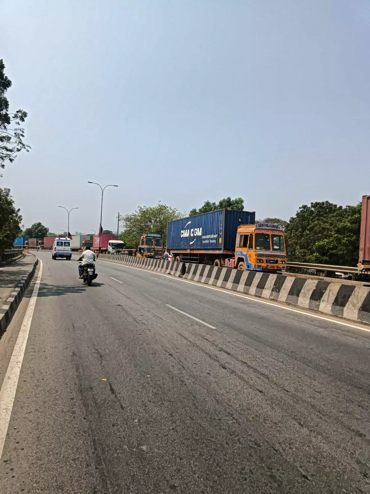 பாலத்தில் நிறுத்தப்படும் கனரக வாகனங்கள்