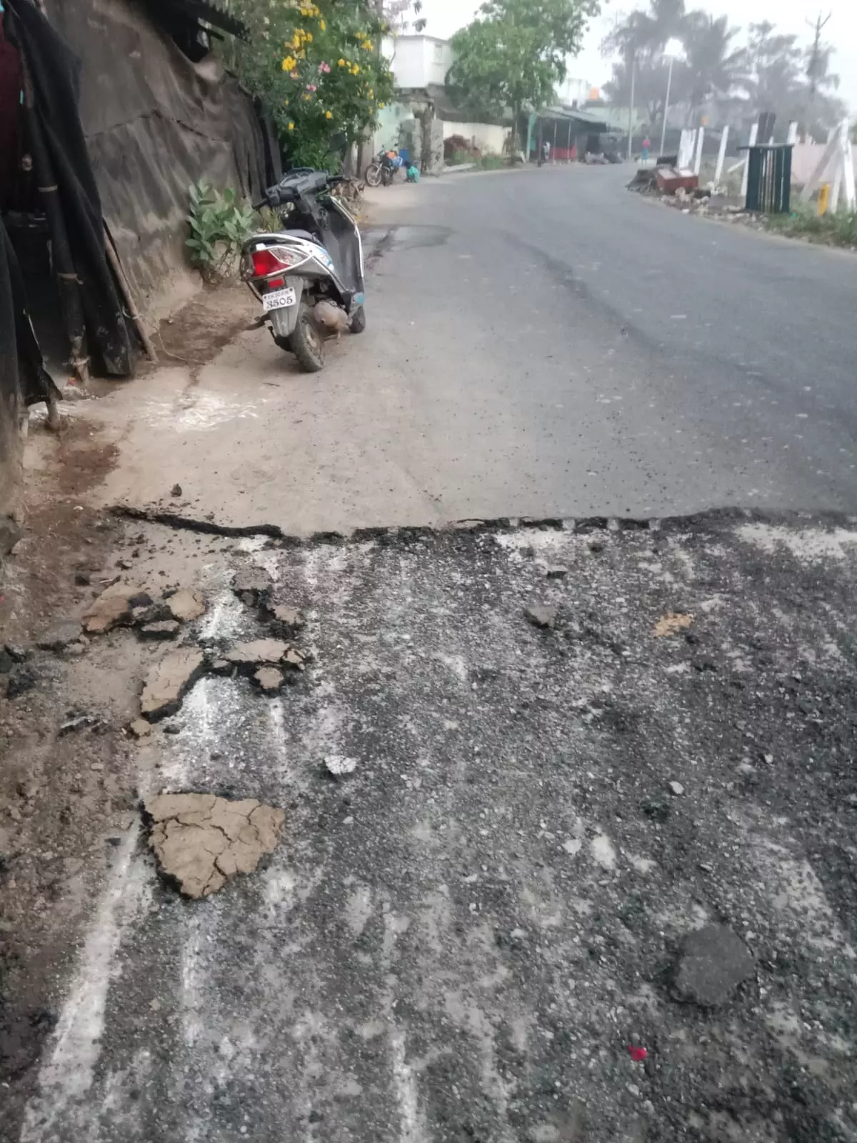 சிதலமடைந்த புதிய சாலை