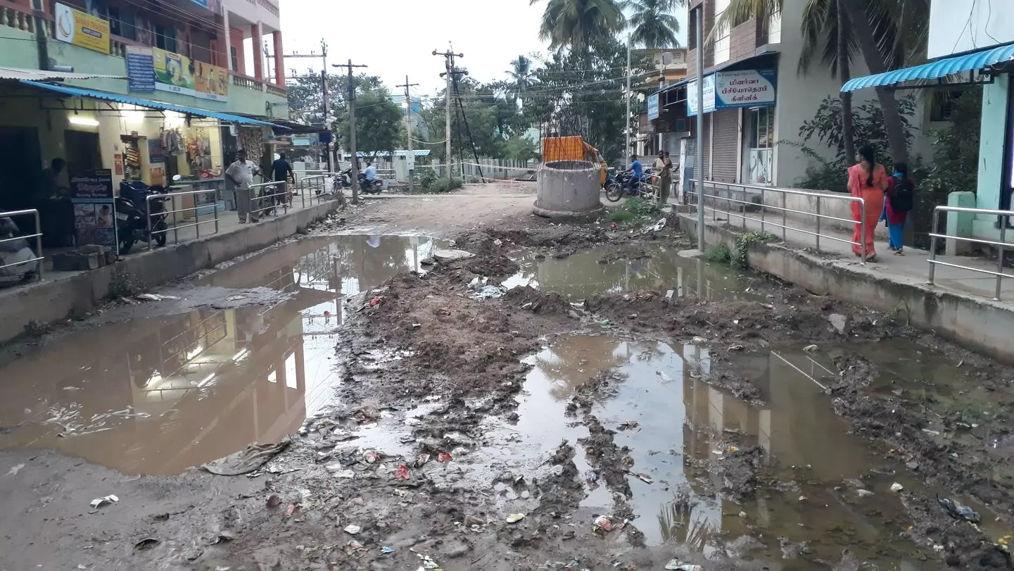 வேலூர் அருகே வள்ளலாரில் பி.எப். அலுவலகம் அருகே ஓயாஸிஸ் 5-வது தெரு உள்ளது. இங்கு, சாலைப் பணிகள் முடியாத நிலையில் மழைநீர் வடிய வழியில்லாமல் தேங்கி நிற்கிறது. வாகன போக்குவரத்துக்கு நீண்ட நாட்களாக இடையூறாக இருப்பதால், சாலையை விரைவாக அமைக்க மாநகராட்சி நிர்வாகம் நடவடிக்கை எடுக்குமா?