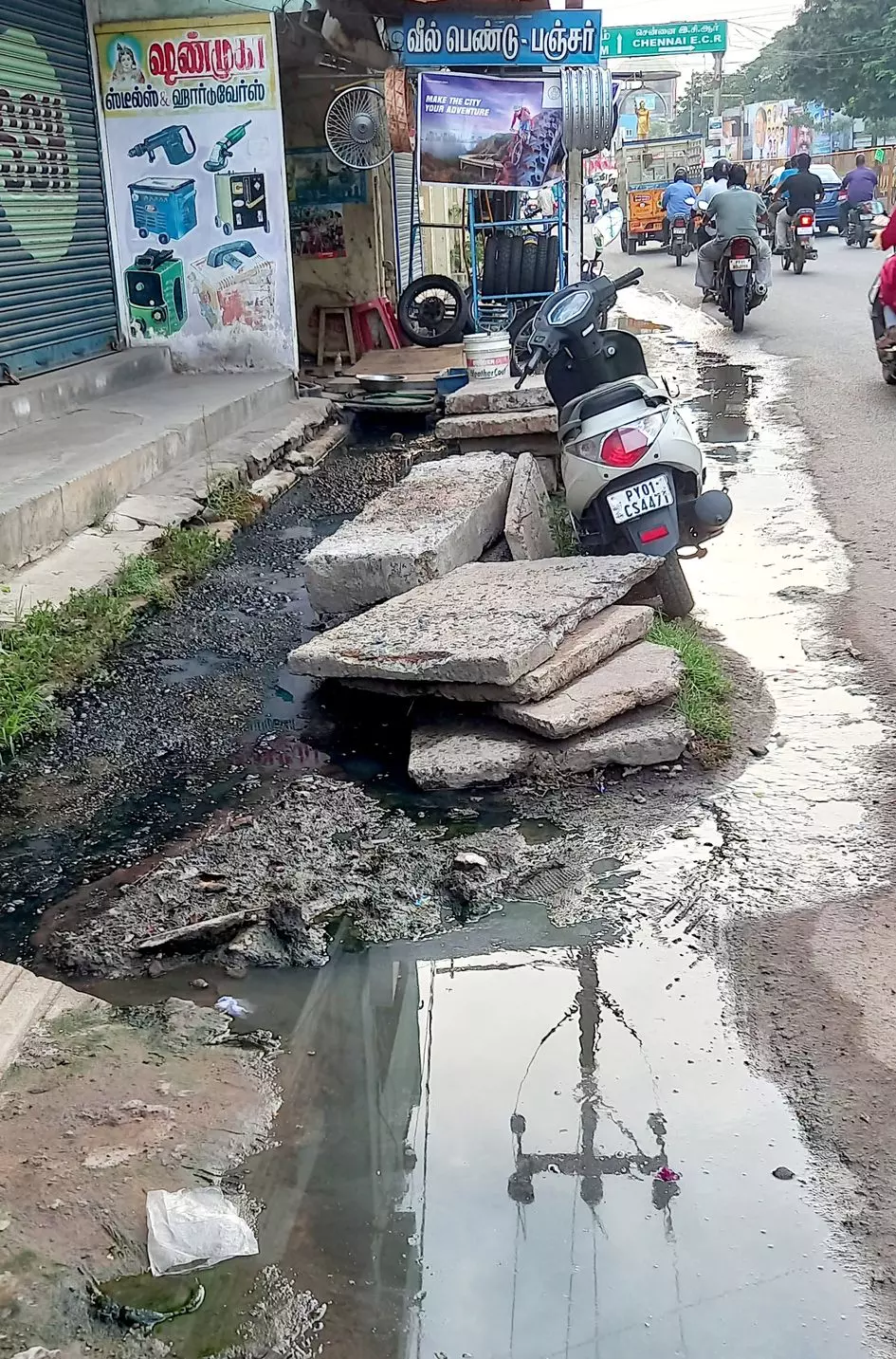 புதுச்சேரி ராஜீவ் காந்தி சிலை அருக சாக்கடை கால்வாய் உடைந்து கழிவுநீர் சாலையில் செல்கிறது இதை சரி செய்ய நடவடிக்கை எடுக்கவேண்டும்.