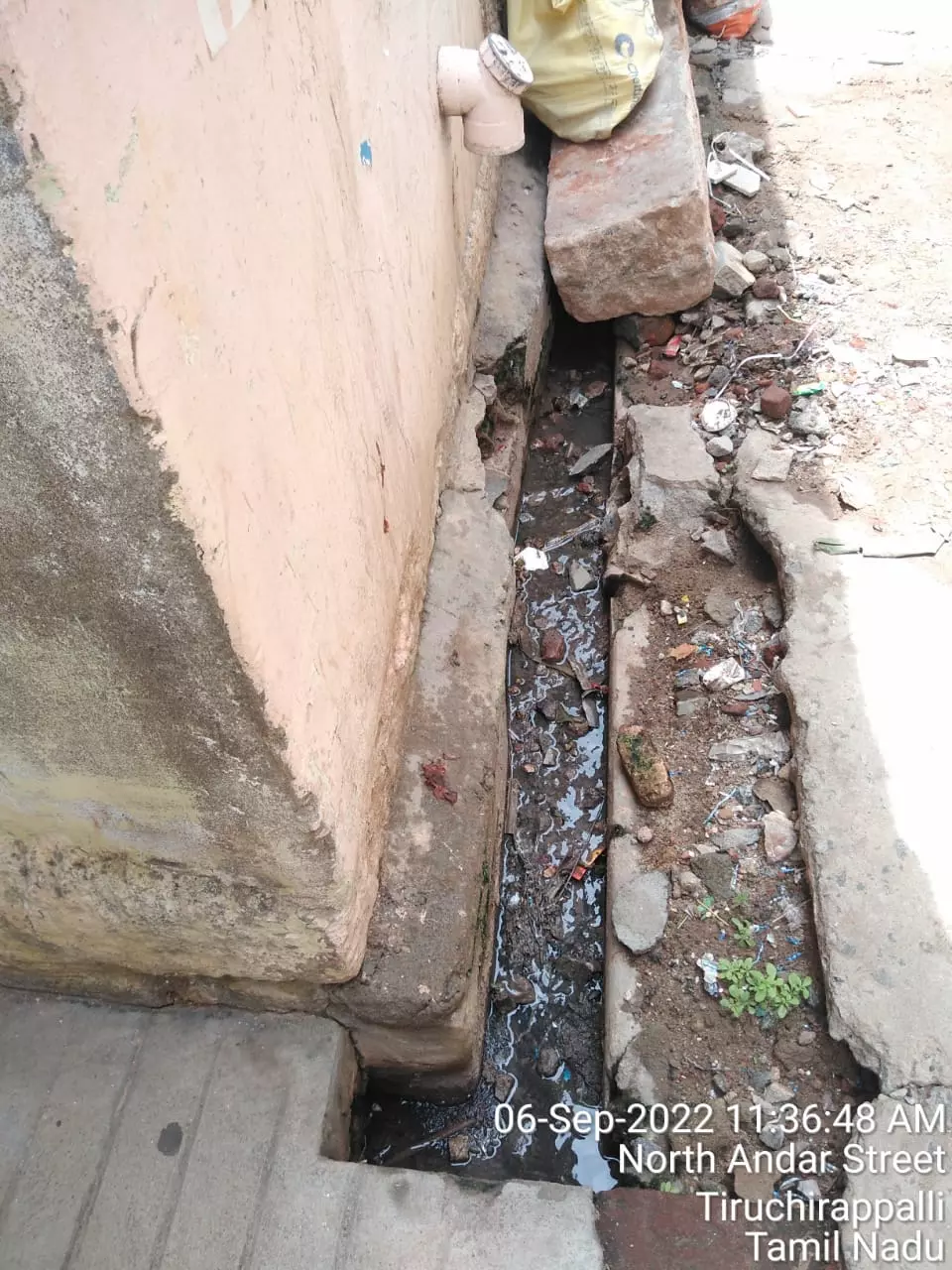 திருச்சி மாநகராட்சி 13-வது வார்டுக்கு உட்பட்ட புதுப்படி சந்து பகுதியில் உள்ள கழிவுநீர் வாய்க்காலில் அடைப்பு ஏற்பட்டுள்ளதால் கழிவுநீர் செல்ல வழி இன்றி தேங்கி நிற்கிறது. இதனால் இவற்றில் இருந்து அதிக அளவில் கொசுக்கள் உற்பத்தியாகி இப்பகுதியில் நோய் பரவும் அபாயம் ஏற்பட்டுள்ளது. மேலும் தேங்கி நிற்கும் கழிவுநீரால் கடும் துர்நாற்றம் வீசுகிறது. எனவே இதுகுறித்து சம்பந்தப்பட்ட அதிகாரிகள் நடவடிக்கை எடுக்க வேண்டும் என கேட்டுக்கொள்கிறோம்.