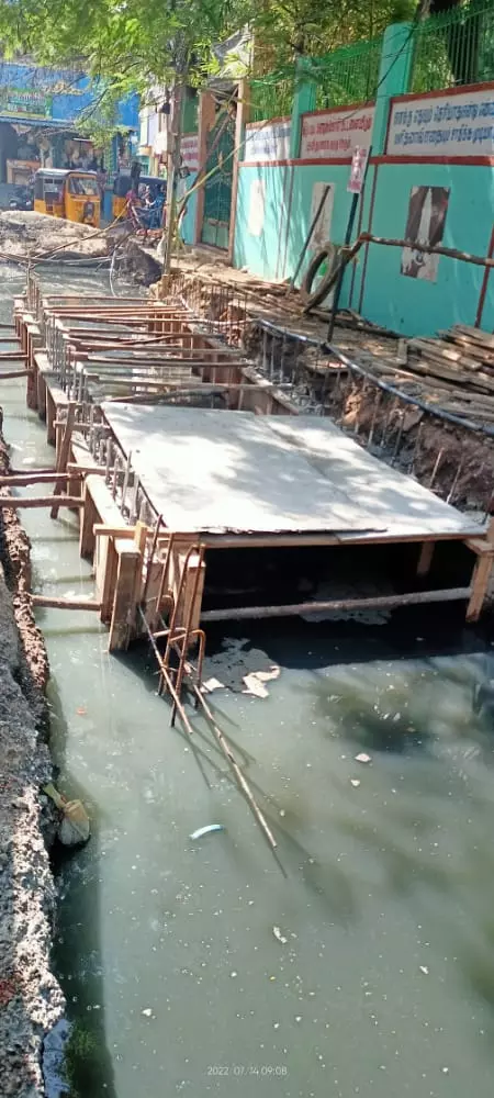 சென்னை கொருக்குப்பேட்டை ஜவான்மல் சௌகார் தெருவில் மழைநீர் கால்வாய் அமைக்கும் பணி நடைபெற்றுவருகிறது. இந்தநிலையில் எதிர்பாராதவிதமாக கழிவுநீர் குழாய்கள் சேதமடைந்து, கழிவுநீர் தேங்கி வருகிறது. தேங்கிய கழிவுநீர் அகற்றப்படாமல் அதன் மேலேயே கால்வாய் அமைக்கும் பணி தொடர்ந்து நடைபெற்று வருகிறது. இதுகுறித்து சம்பந்தபட்ட அதிகாரிகள் உடனடியாக நடவடிக்கை எடுக்க வேண்டும்.