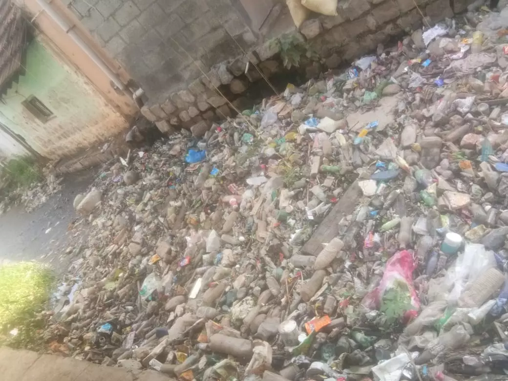கழிவுநீரில் தேங்கி நிற்கும் குப்பைகள்