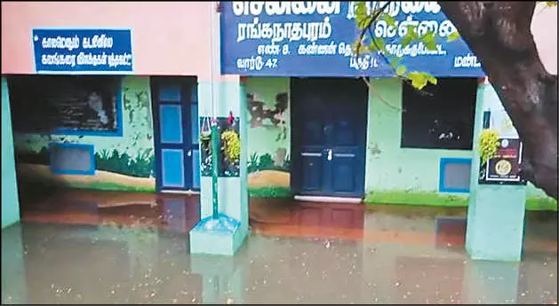 சென்னை கொருக்குப்பேட்டை அரங்கநாதபுரம், கண்ணன் தெரு பகுதியில் அரசு நடுநிலைப்பள்ளி ஒன்று உள்ளது. கண்ணன் தெருவில் கடந்த மாதம் மழைநீர் கால்வாய் பணி நடைபெற்றபோது அரசு பள்ளியின் கழிவுநீர், குடிநீர் குழாய்கள் உடைந்துவிட்டது. இது மறுசீரமைப்பு செய்யப்படவில்லை. சின்ன மழை பெய்தாலும் மழைநீரும், கழிவுநீரும் பள்ளியின் வகுப்பறைகளை சூழ்ந்து நிற்கிறது. மாநகராட்சி அதிகாரிகள் கவனித்து பள்ளிகளில் மழைநீர், கழிவுநீர் தேங்காதவாறு துரித நடவடிக்கை எடுக்க வேண்டும்.