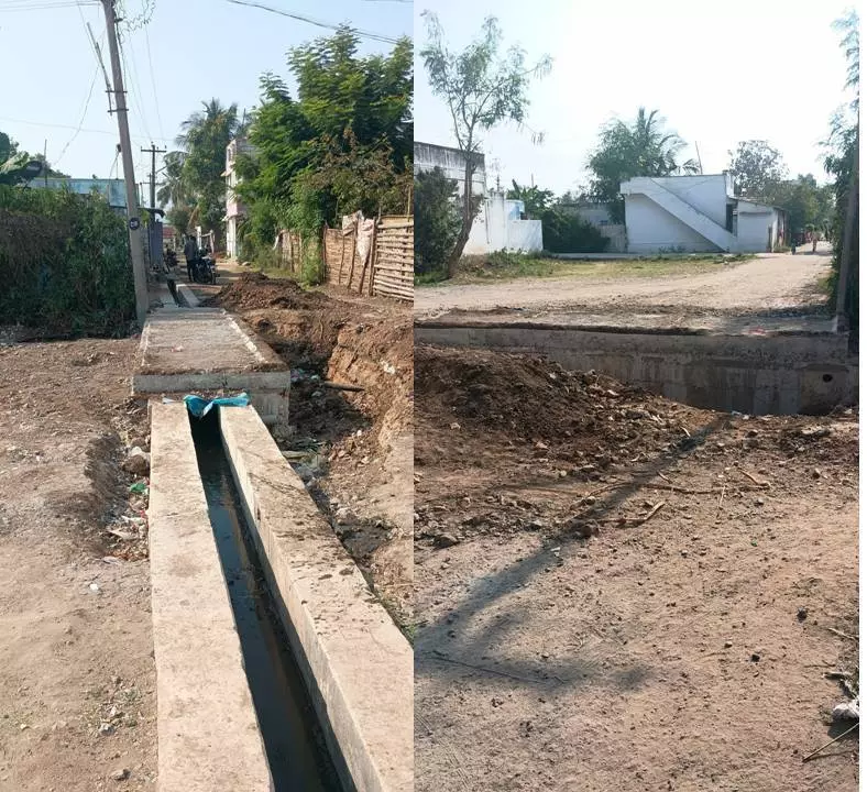 பாதியில் நிற்கும் சாக்கடை கால்வாய்