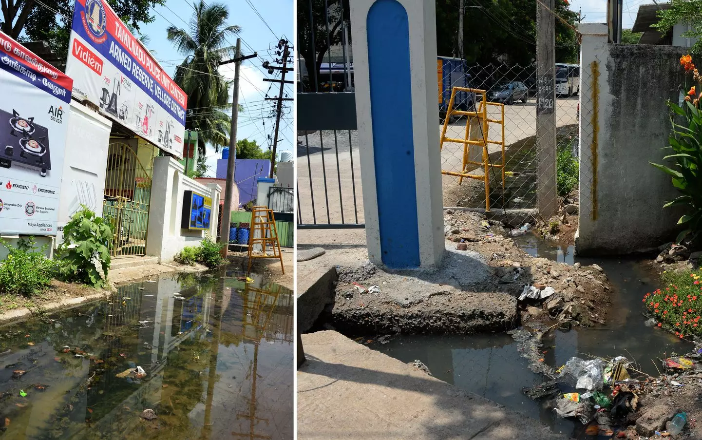 வேலூர் புதிய மாநகராட்சி அலுவலகத்தில் இருந்து செயின்ட் மேரிஸ் பள்ளி செல்லும் வழியில் காவலர் குடியிருப்பு உள்ளது. இங்கு உதவி ஆய்வாளர் குடியிருப்பு கட்டிடம் அருகில் கழிவுநீர் வளாகத்தின் உள்ளே புகுந்து, தேங்கி சுகாதாரச் கேடு ஏற்பட்டுள்ளது. தற்காலிகமாக கழிவுநீர் புகாமல் ஏற்படுத்தப்பட்ட தடுப்பையும் மீறி செல்லும் கழிவுநீரை வெளியேற்ற அதிகாரிகள் நடவடிக்கை எடுப்பார்களா?