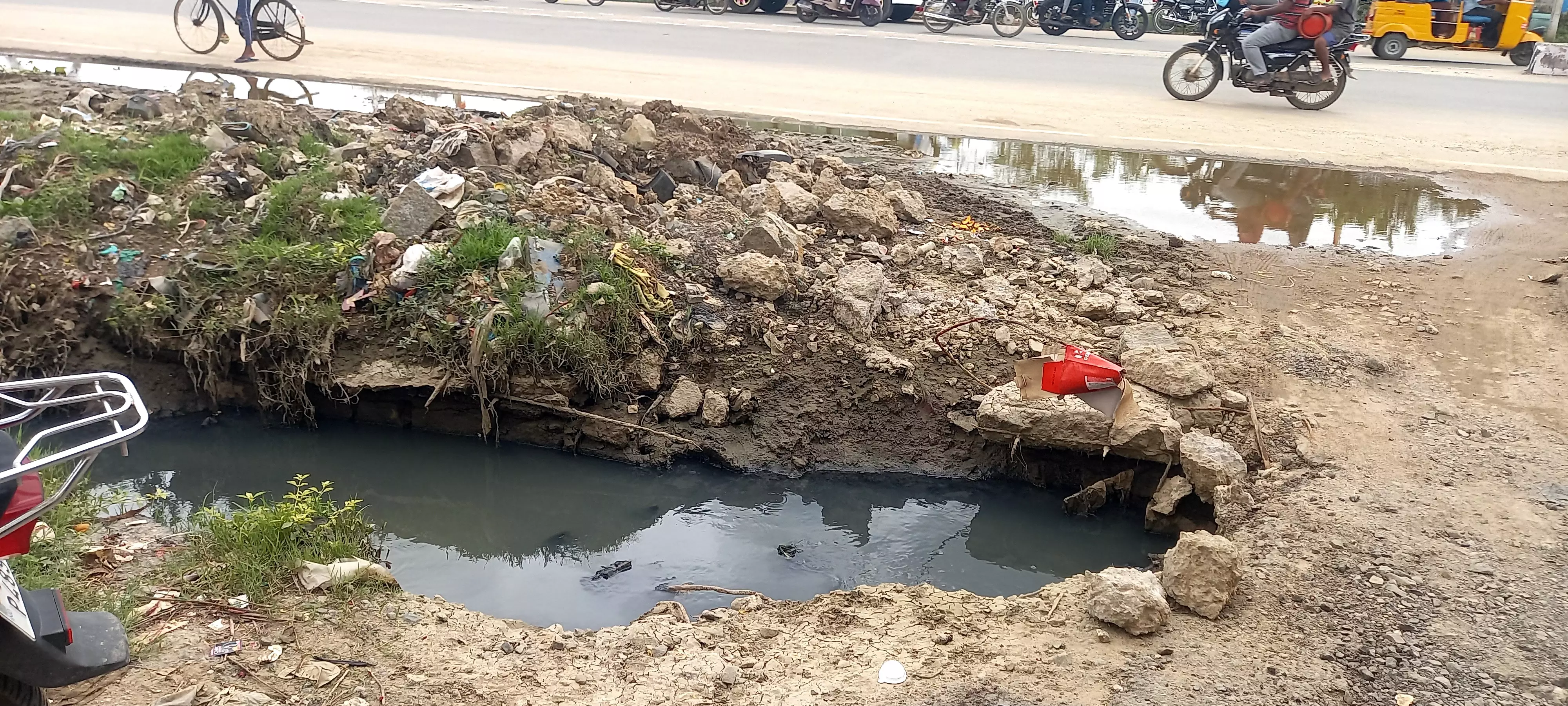 திருப்பத்தூர் நகராட்சிக்கு உட்பட்ட அட்வகேட் ராமநாத நகர் மின்சார சுடுகாடு எதிரே உள்ள தெருப்பகுதியில் கடந்த 15 நாட்களுக்கு முன்பு மழை காரணமாக கழிவுநீர் கால்வாய்களில் இருந்து கழிவுகளை அகற்றி அதன் கரையிலேயே கொட்டினர். இதற்காக கால்வாய் மேல் மூடப்பட்டிருந்த கற்களை அகற்றியிருந்தனர். ஆனால் பணிகள் முடிந்ததும் மீண்டும் கற்களை கொண்டு கால்வாயை மூடாமல் அப்படியே விட்டுள்ளனர். இதன்ல் அந்தப்பகுதி பொதுமக்கள் தங்கள் வீடுகளில் இருந்து கார்களை வெளிய எடுக்க முடியவில்லை. பலமுறை புகார் மனு கொடுத்தும் நகராட்சி எந்தவித நடவடிக்கை எடுக்கவில்லை. எனவே மாவட்ட நிர்வாகம் உடனடியாக நடவடிக்கை எடுக்க வேண்டும்.