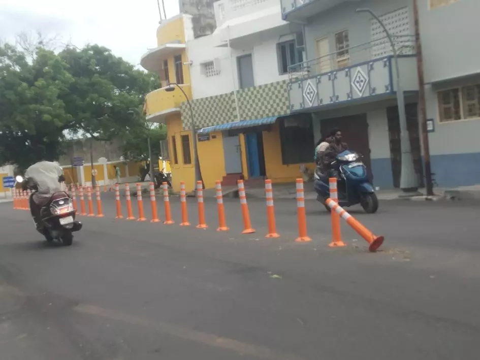 புதுவை அண்ணாசாலை, புஸ்சி வீதி, எஸ்.பி.படேல் சாலை உள்ளிட்ட நகரப்பகுதியில் போக்குவரத்து நெரிசலை தடுக்க சாலையின் நடுவில் சிறிய அளவிலான தடுப்பு கட்டை வைக்கப்பட்டுள்ளது. அவற்றில் ஒரு சில தடுப்பு கட்டைகள் சேதமடைந்து காணப்படுகிறது. அதனை சரிசெய்ய வேண்டும்.