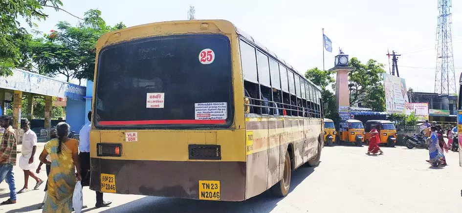 ஆனால் பின்பக்கம் பெயர் பலகை வைக்கவில்லை. முன்பக்கம் ெபயர் பலகை ைவப்பதுபோல் பின் பக்கமும் ைவக்க வேண்டும். இல்லைேயல், ஊர் பெயர் எழுதப்பட்ட ஸ்டிக்கர் ஒட்ட வேண்டும். இதற்கு போக்குவரத்துக்கழக பணிமனை மேலாளர்கள் நடவடிக்கை எடுக்க வேண்டும்.
