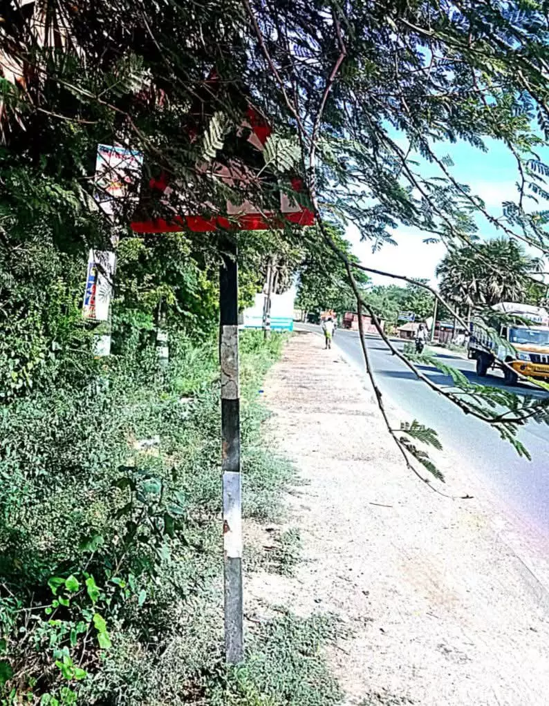 அரியலூர் மாவட்டம் வி.கைகாட்டியில் அரியலூர் செல்லும் குறுகிய சாலையில் மண்ணுழி பிரிவு பாதை உள்ளது. அதற்கு தென் புறத்தில் ஆபத்தான வளைவு பகுதி உள்ளது. இதற்காக நெடுஞ்சாலைத்துறை அறிவிப்பு பலகை வைத்துள்ளது. அந்த பலகையின் மீது அங்குள்ள மரக்கிளைகள் படர்ந்து அறிவுப்பு பலகையை மறைத்துள்ளது. இதனால் வெளி மாவட்டங்களிலிருந்து இவ்வழியாக வேகமாக இருசக்கர வாகனங்களில் வரும் போது விபத்துகள் நிகழ வாய்ப்புள்ளது. எனவே இதுகுறித்து சம்பந்தப்பட்ட அதிகாரிகள் உடனடியாக அறிவிப்பு பலகையை மறைத்துள்ள மரக்கிளைகளை அகற்ற நடவடிக்கை எடுக்க வேண்டும் என கேட்டுக்கொள்கிறோம்.