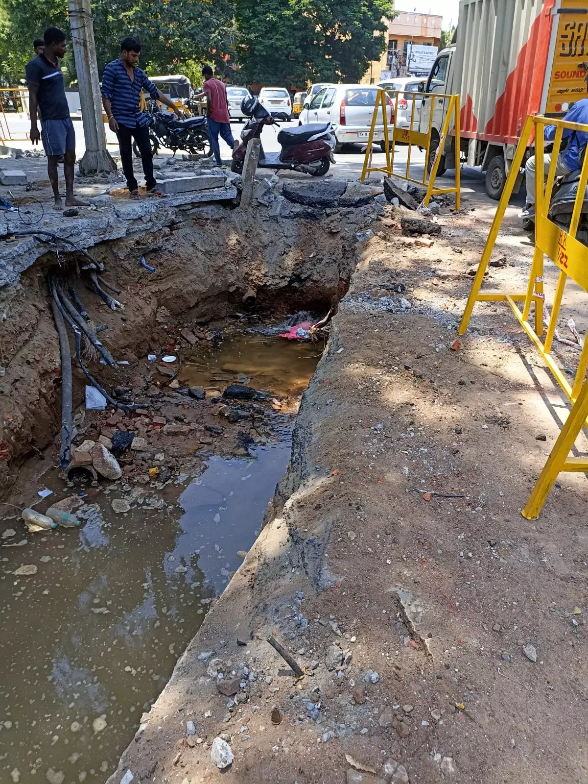 சென்னை எழும்பூர் பாந்தியன் சாலையிலுள்ள பிரபல ஹோட்டல் எதிரே தண்ணீர் குழாய் உடைந்து தண்ணீர் வீணாகி வருகிறது. மேலும் இந்த பகுதியில் இருக்கும் பள்ளத்தில் தண்ணீர் தேங்கியும் வருகிறது. இதனால் இந்த பகுதியில் குடிநீர் தட்டுப்பாடு ஏற்பட அதிக வாய்ப்புகள் இருக்கிறது. எனவே குடிநீர் வாரியம் விரைவில் இந்த குழாயை சீரமைக்க வேண்டும் என கேட்டுக்கொள்கிறோம்.