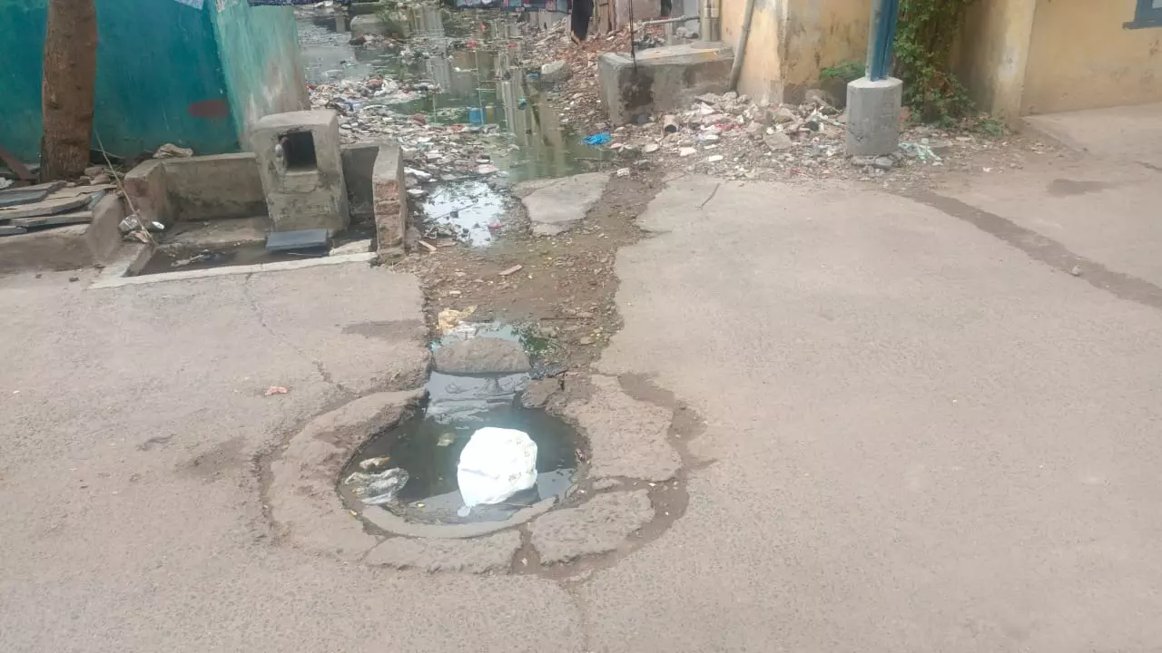 சென்னை தண்டையார்பேட்டை வ.உ.சி. நகர் பிரதான சாலையில் உள்ள பாதாள சாக்கடையில் அடைப்பு ஏற்பட்டுள்ளது. பாதாள சாக்கடைக்கு அருகிலேயே குடிநீர் குழாயும் இருப்பதல், குடிநீருடன் கழிவுநீர் கலக்கும் அபாயம் ஏற்பட்டுள்ளது. எனவே விரைவில் இந்த பாதாள சாக்கடை பிரச்சினைக்கு முற்றுப்புள்ளி வைக்க வேண்டும் என கேட்டுக்கொள்கிறோம்.